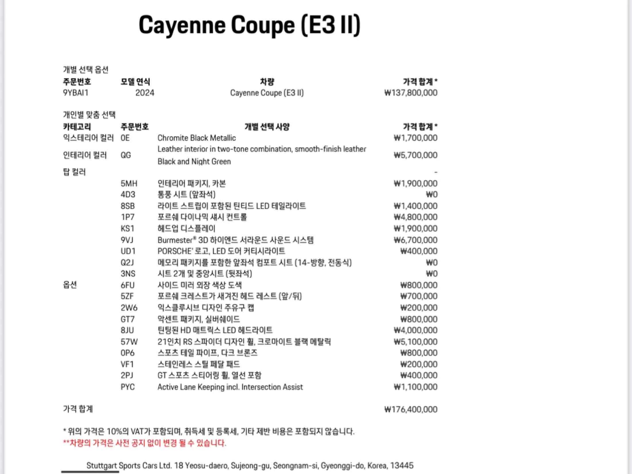 Porsche CAYENNE 3.0 Coupe, 2024 г. 65015 км. 2.9 4WD Tiptronic S (440 л.с.) автомат — под заказ из Кореи